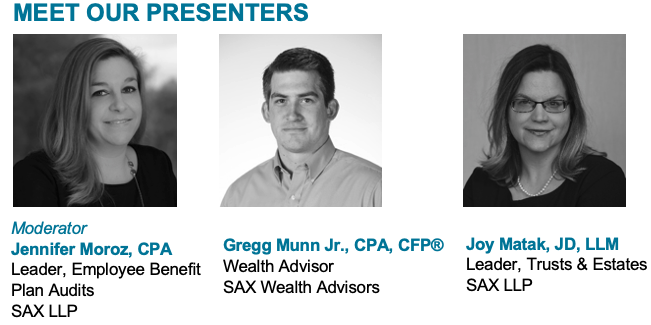 In case you missed it, watch as our in-house experts at Sax Wealth Advisors and Sax LLP address the crucial need-to-knows for your year-end tax planning.